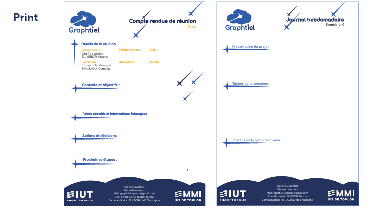 Ce projet consistait à concevoir l'identité visuelle complète de l’agence fictive Graphtiel, créée dans le cadre du BUT MMI. Nous avons imaginé une direction artistique inspirée des constellations, symbolisant la créativité et la singularité des projets accompagnés.